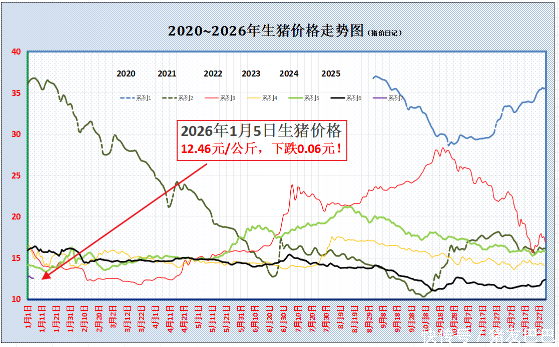 据数据分析,截至1月5日,外三元标猪报价在12.46元/公斤,环比昨日下降0.06元,猪价呈现“3连降”,市场延续惯性下跌的走势,相比月初,猪价累计下降0.31元/公斤,降幅达到2.43%。